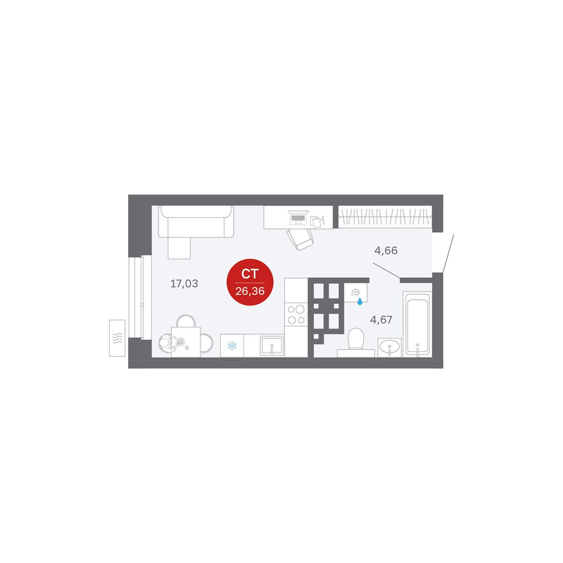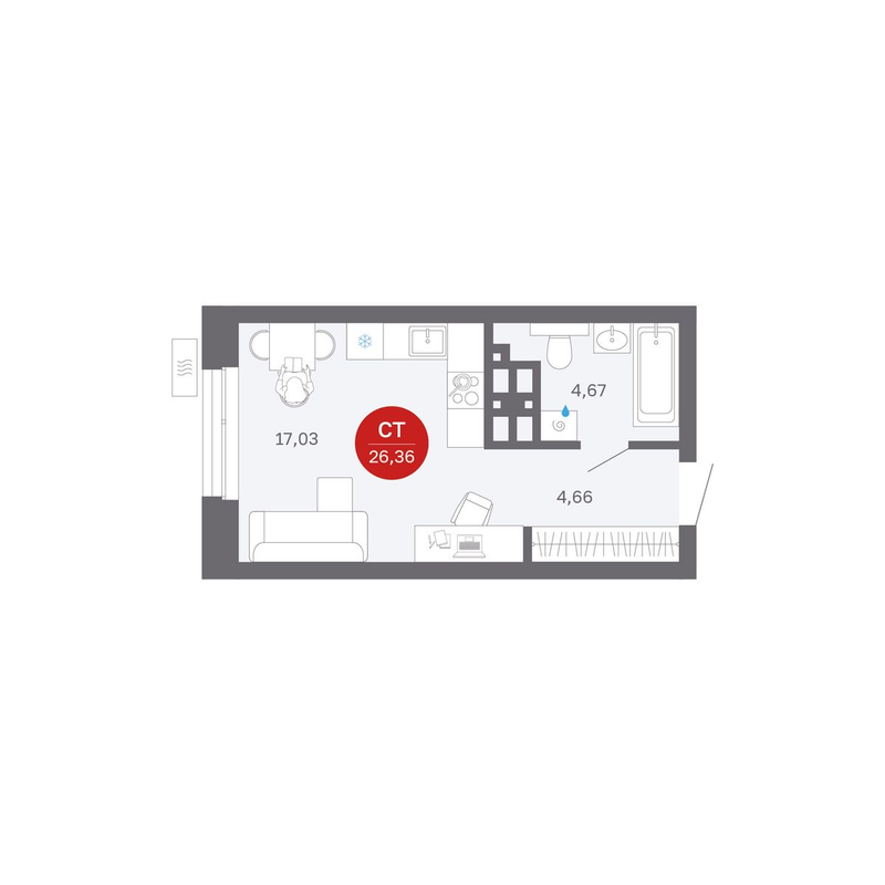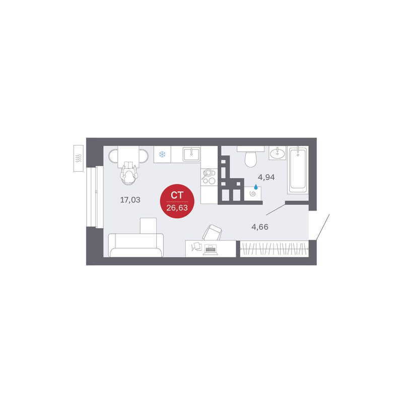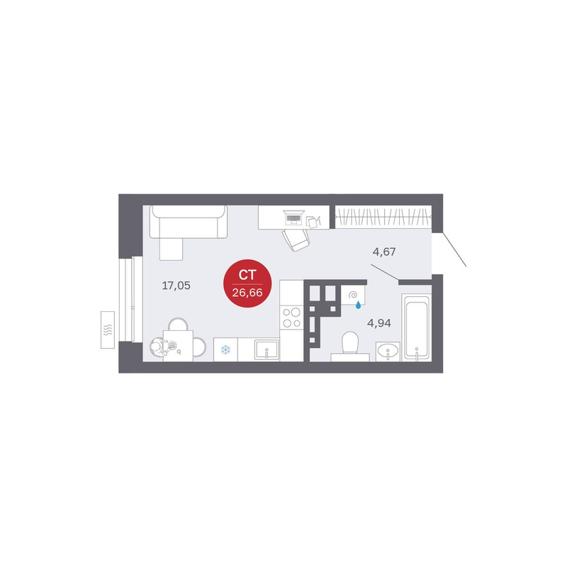от 26,66 до 74,59 м²